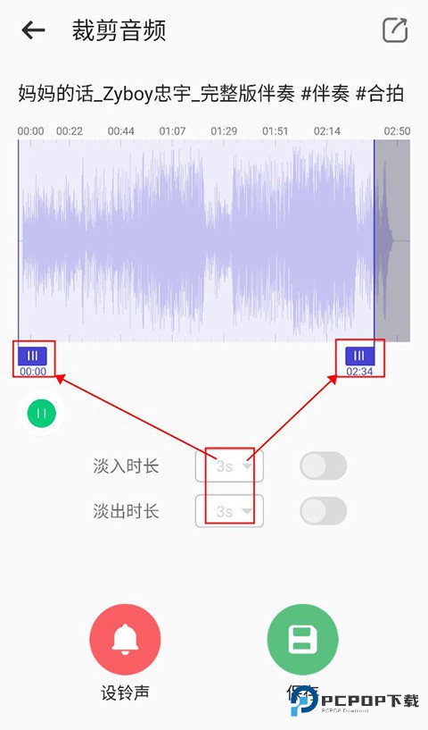 之后用户就可以将提取出来的音乐进行裁剪设置。