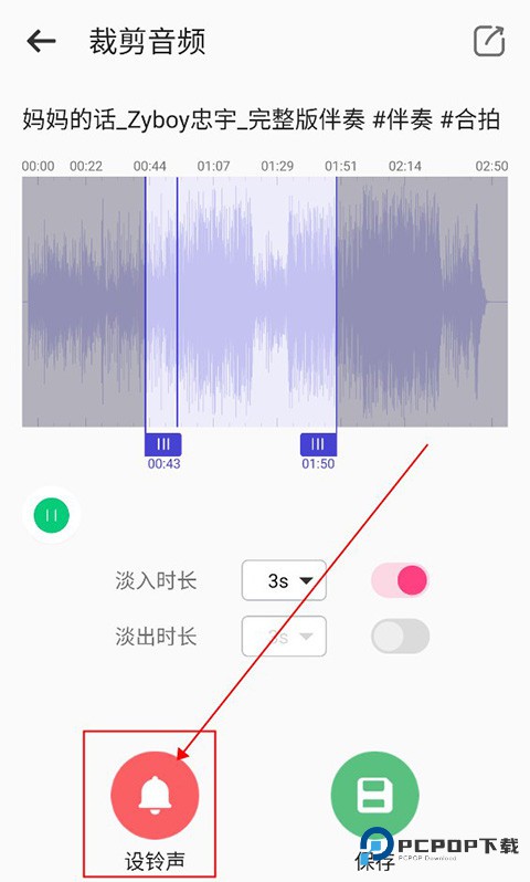 裁剪完毕之后用户就可以点击下方的“设铃声”按钮进行铃声的设置。
