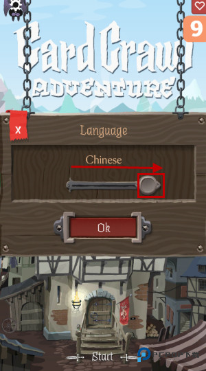 3、打开语言设置界面后,将这个拨杆拨到最后面,语言调整到中文,点击OK按键即可。