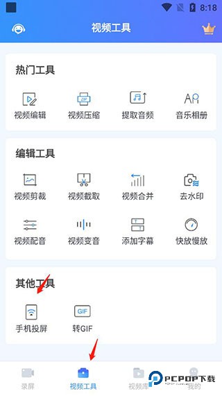 1、打开视频工具,在其他工具中可以找到手机投屏,点击进入;