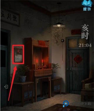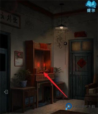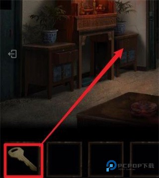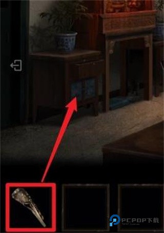 8、返回客厅,点击神龛右边的柜子,使用【钥匙】打开柜子,得到【老虎钳】。