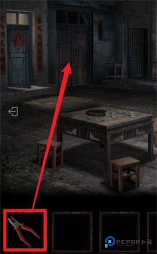 9、来到院子,使用【老虎钳】打开院子的大门。
