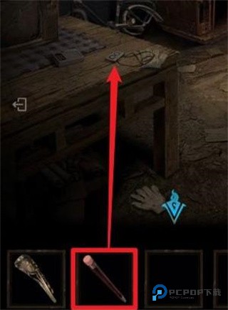 13、点击右边的柜子,在柜子上获得【铅笔】。
