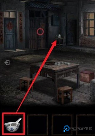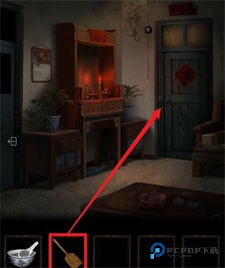 4、对右前方的门使用【香灰铲】,开门后来到院子。