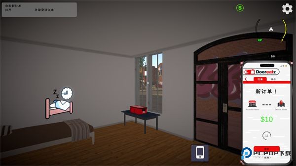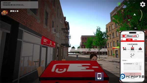 1、使用游戏中的配送App接取订单,根据地图导航前往餐厅取餐,再在限定时间内送达客户手中。