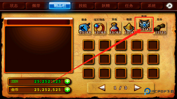 MISC,药品,其实很杂,回复药(POTION)、强化用的材料、精灵出来的符文石(RUNE)和技能石(SKILL STONE)都在这里