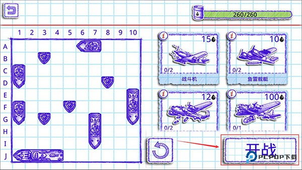 4、海战使用方格记事本作为游戏背景,并使用圆珠笔风格进行美术创作,让游戏回归最原始的感觉。