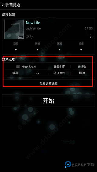 4、接着选择好歌曲后,可以设置下游戏选项,然后开始游戏