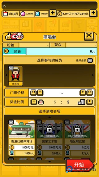 选择演唱会场,选择参与的成员,制定相应的门票价格和奖金比例来获得收益和粉丝。