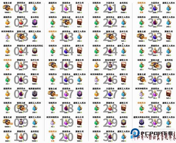 以下这张图是神秘商店每天的具体售卖的魔法物品的图表: