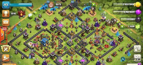 另外,这套暴力狗球流是带了天女的,如果弓箭女皇级别太低、正在休息或者正在升级的话,可以将弓箭女皇、天使和炸弹人改成气球和少许的亡灵。