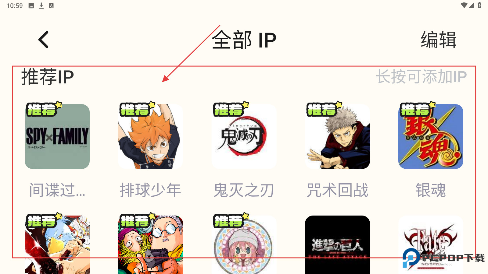 4、还可以切换到【全部IP】页,从推荐IP里选喜欢的动漫,探索相关周边。