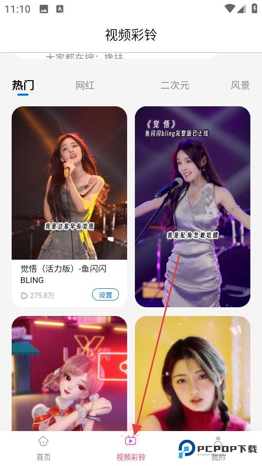 4、切换到视频彩铃页,浏览热门、网红等分类视频彩铃,挑选喜欢的内容,进行设置使用。