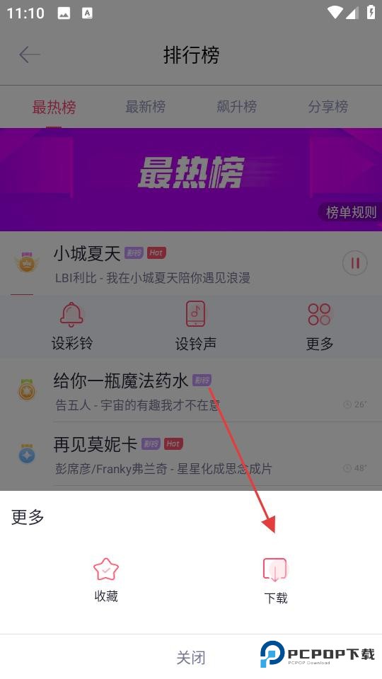3、点击更多,选择下载,将歌曲保存至本地,完成铃声资源获取,就可以使用了。