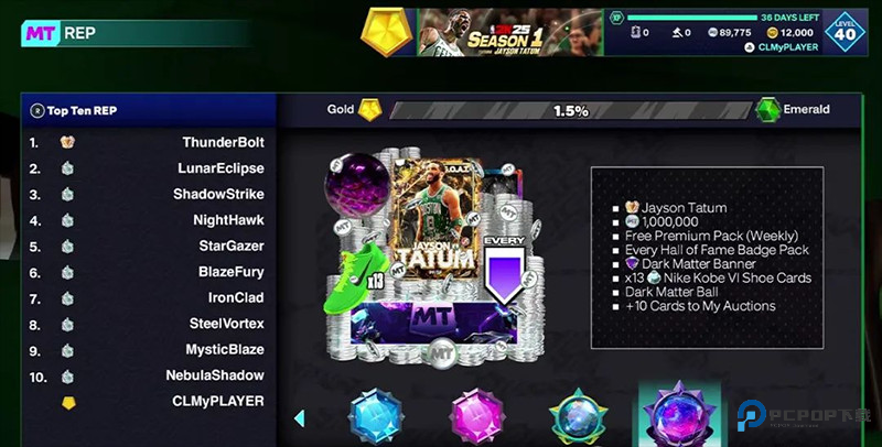 MyTEAM新增的REP系统记录玩家在整个年度内的成绩,与赛季等级系统不同,REP不会重置。系统包括11个等级,玩家通过游戏和挑战积累REP,解锁奖励如G.O.A.T.徽标、暗物质卡片以及更多独家内容,甚至可直接参与周末活动。