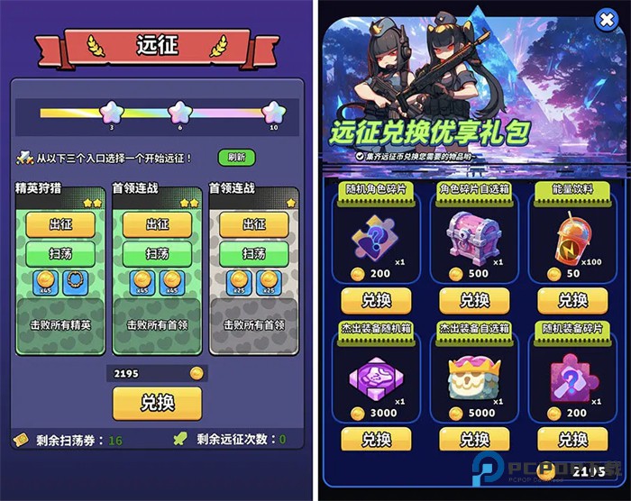3、第六关开启远征每天也是次数打满,远征金币可以兑换角色碎片或杰出装备等材料。