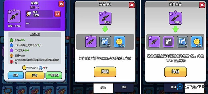 注:第一天有什么装备就装什么装备,后面拿到更好的装备以后可以将之前升级的装备降级,100%返还升级的材料。