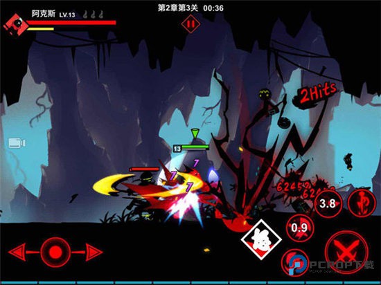 5、等待一会加载,进入游戏如图,游戏采用横版操作,左边方向键控制左右,右边则为攻击,以及技能键位;