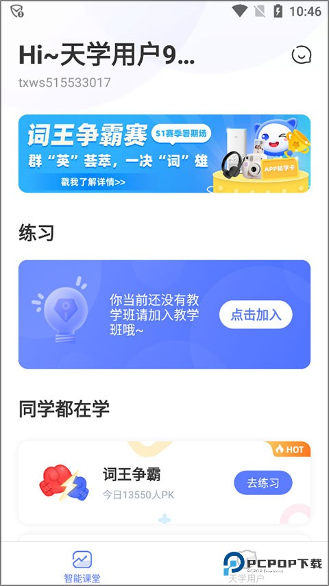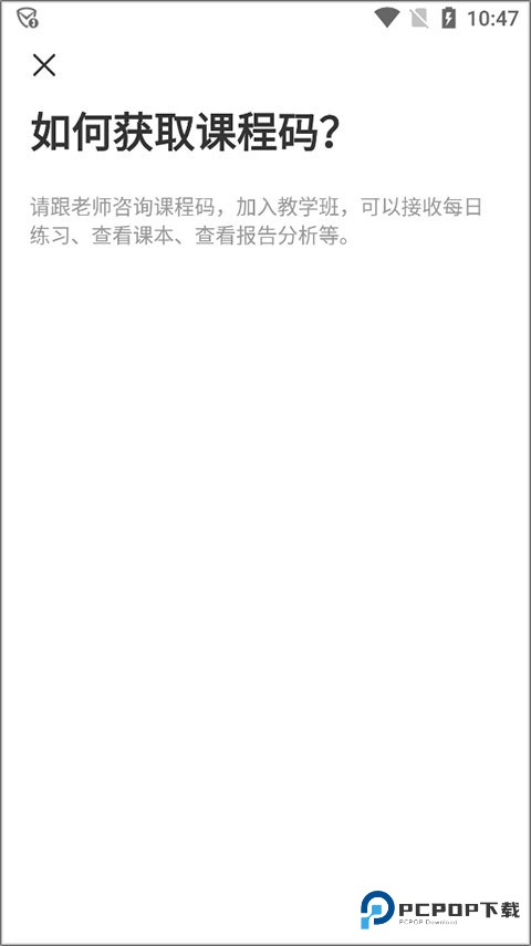4、课程码通过咨询老师获取,加入后,可以接收没日的练习、查看课本、查看报告分析等。