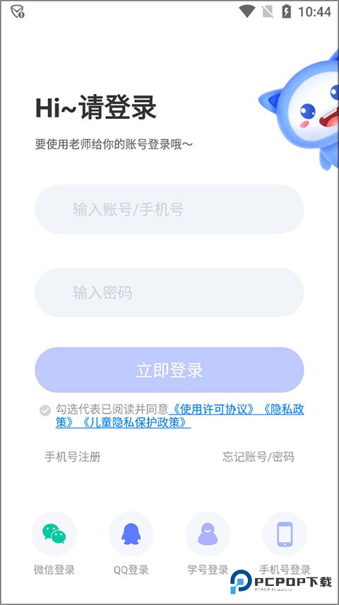 1、下载安装好天学网学生,选择微信、qq、学号或者手机号进行登入软件。