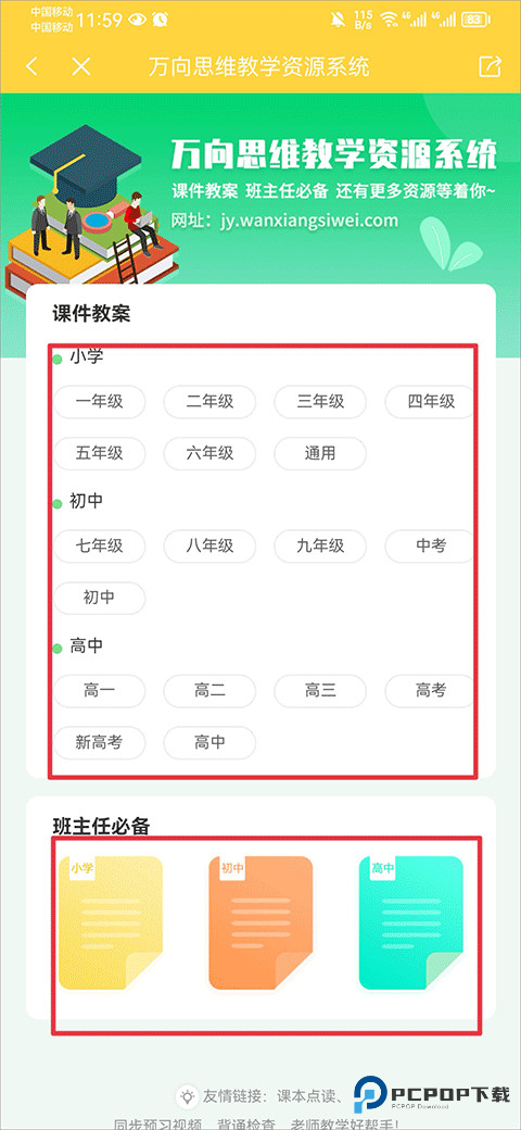 2、进入后选择你任职的年级,若是班主任的话可以在班主任必备中选择所在的年级资料