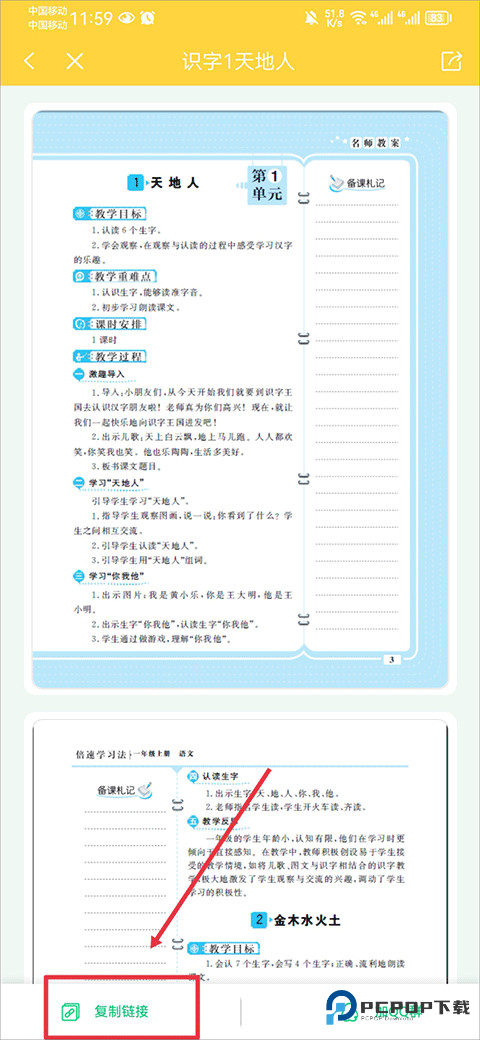 7、最后将复制的链接在手机浏览器中打开后即可进行资料的下载