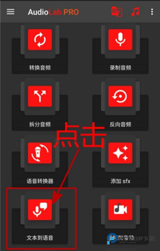 1、打开在本站下载的Audiolab,进入软件首页,点击“文本到语音”。