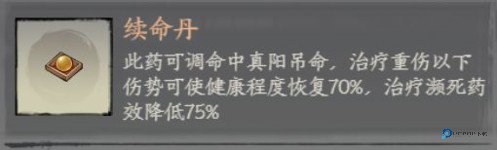 当弟子受到皮外伤的时候,使用止血丹就可以进行治疗。但当受到轻伤,止血丹的效果就会下降整整九成!此刻就需要掌门大人炼制金疮药了。同理当受到重伤时,金疮药的效果也会下降九成,这时就需要吊命丹。而当弟子遭受严重创伤濒死的时候,就只有珍惜的续命丹才能救回他们了。