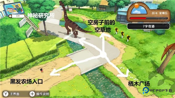 两个地方都叫有门的河岸,且相互连通,一个靠近水域,另一个靠近次郎的地下仓库(恐龙卡片比赛场地)。