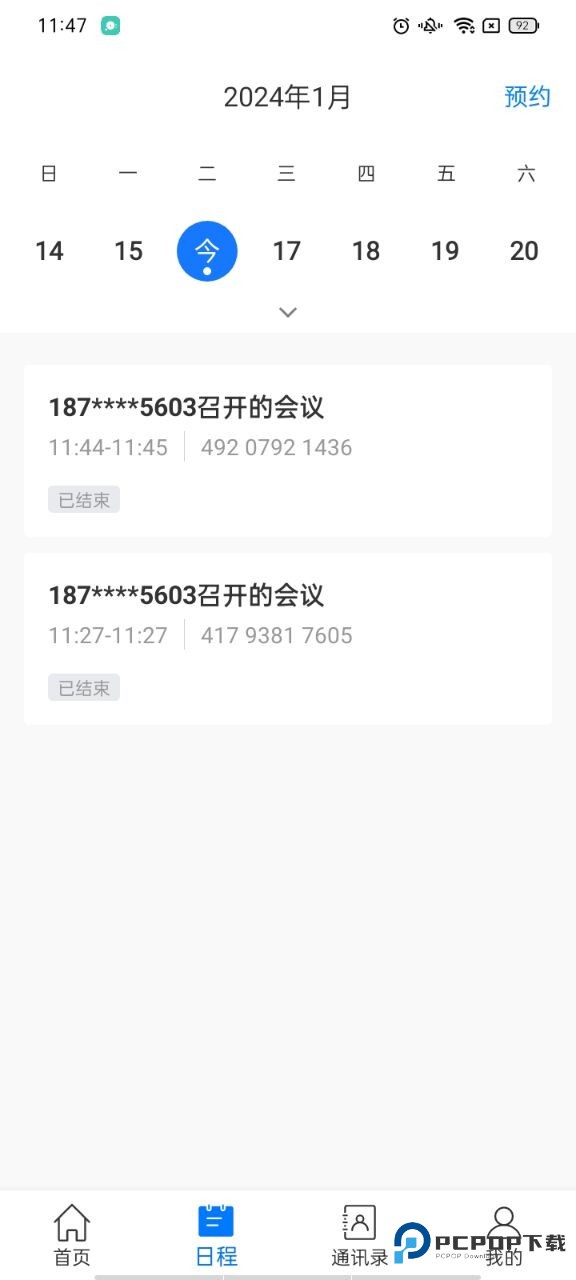 6、会议日程可以查看进行中/未开始/已结束的会议;