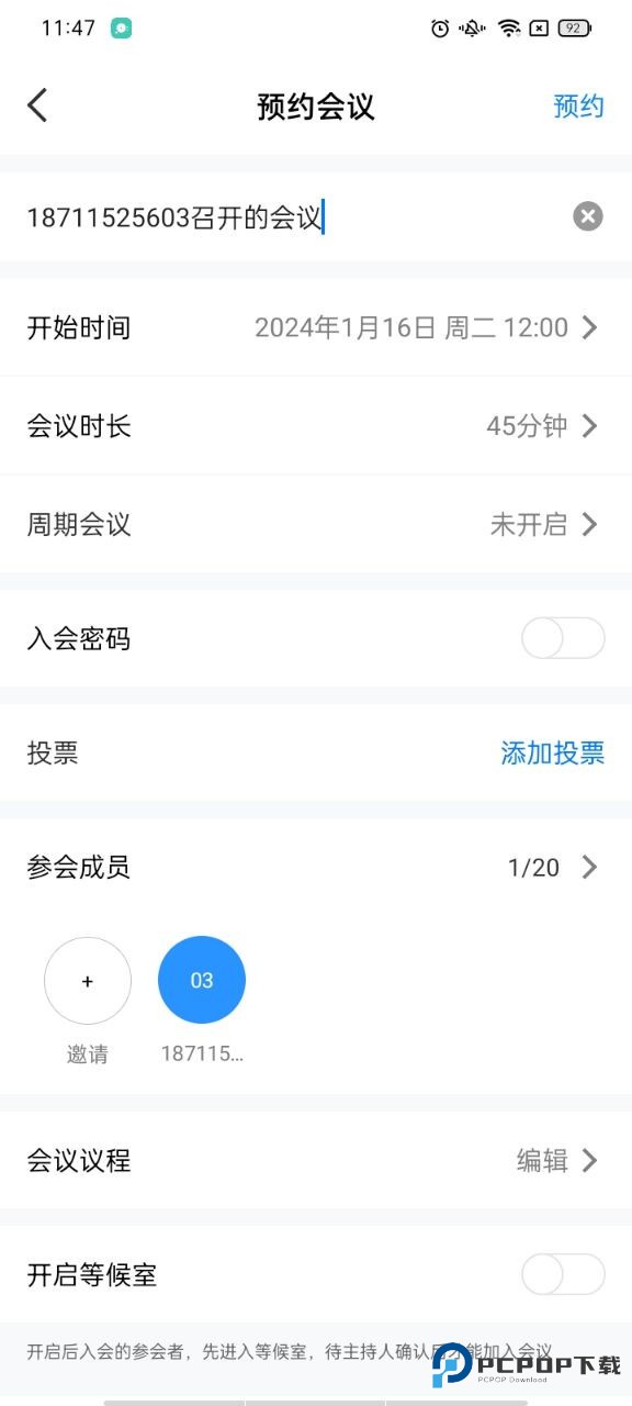 3、如果你是需要提前预约会议,点击预约会议设置时间、会议密码等相关设置;