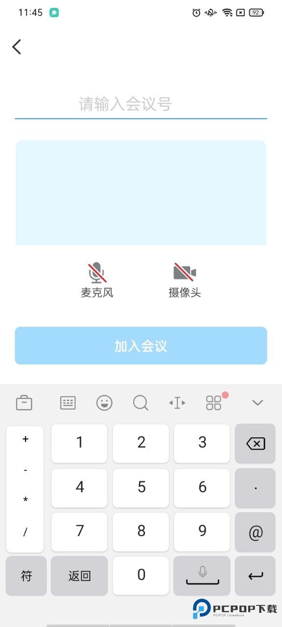 3、输入会议号即可入会,如会议有密码,将提示输入密码。入会可以设置开启/关闭摄像头和开启/关闭麦克风;