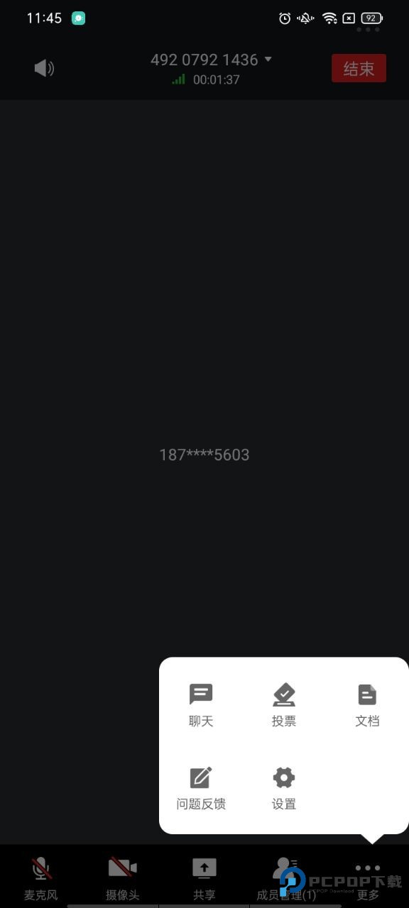 2、如果你是需要会议主持人,需要你开启会议,则点击快速会议即可开始邀请成员,并支持共享、投票、文档功能;