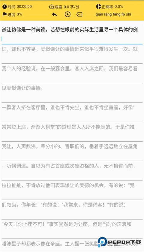 1、软件中练字的内容非常丰富,包括成语、短文、段落、小说等等,从易到难,帮助用户轻松提升打字的速度,降低打字的错字率