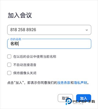 在第二栏中,要输入你在会议中想使用的「名称」,再点击「加入」