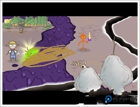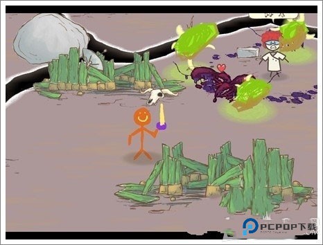 9、继续向前走就可以看到第二只大老鼠怪物,同样一边画树叶一边可以躲避就可以消灭老鼠了,然后我们就可以救出第二个火柴人。