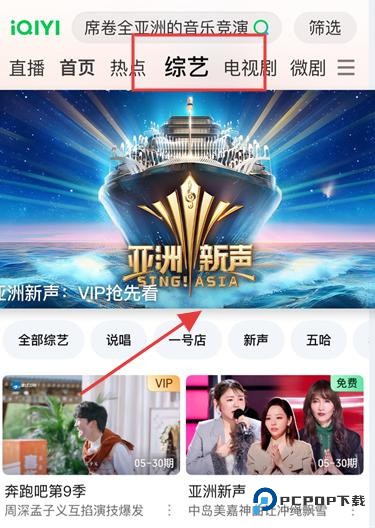 2、进入综艺频道,依据箭头指向,找到亚洲新声相关推荐,查看该综艺的介绍与播放入口。
