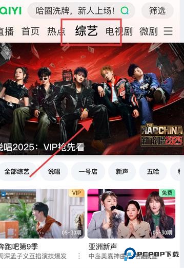 3、综艺频道,说唱 2025等综艺内容,点击对应封面,进入综艺播放页面开始观看。