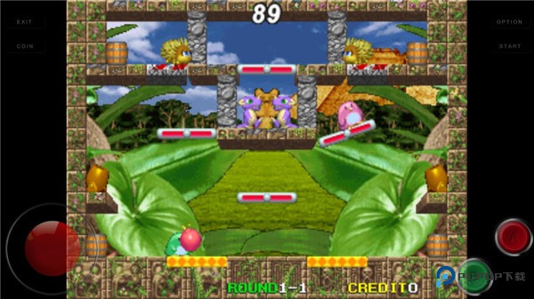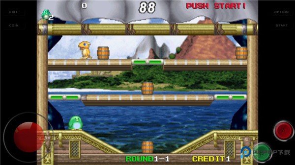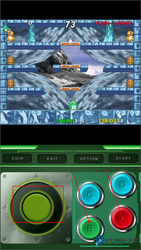 3、左边的轮盘控制人物的移动,A是扔炸弹,B是控制人物跳跃。需要注意每次只能扔一枚炸弹。通过打败怪物获得的加速鞋还具有幻影特效,还可以炸木桶获取道具,来帮助你过关。