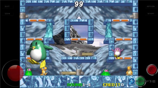 2、可以控制小企鹅移动跳跃,从而去爬到不同的台阶上去获得道具消灭敌人。