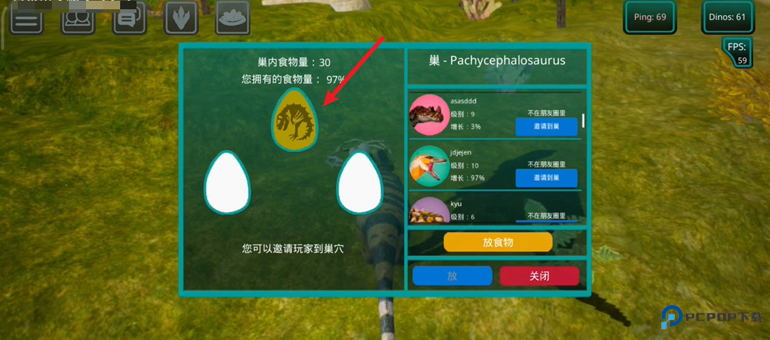 5、我们需要在窝内放置食物,这样才能够顺利的孵出小龙。