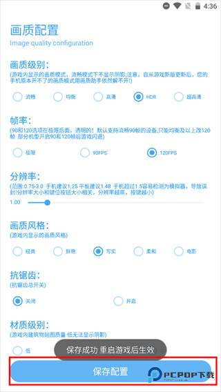 4、选择好自己想要的配置,点击“保存配置”,重新打开游戏即可