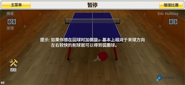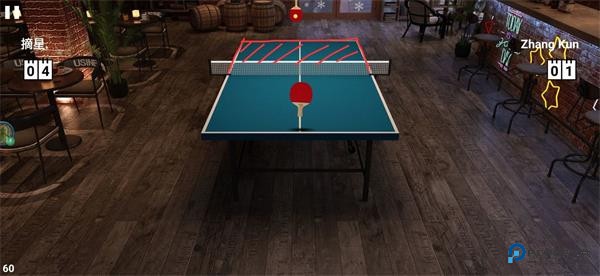 5、乒乓球和球拍都使用物理引擎,画面非常逼真,可以欣赏。