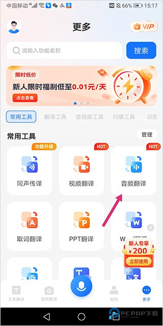 1、用户进入应用的【更多】页面中点击【音频翻译】