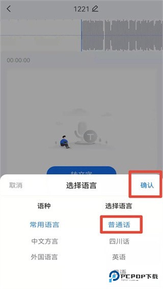 2、添加完成后,选择录音的语言,此功能可转写多种语言;随后点击确认,等待转写完成。
