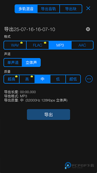 5、编辑完成后可一键导出各种音频格式和音频文件
