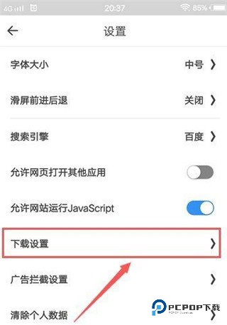 3、在“设置”窗口中,找到“下载设置”栏目。