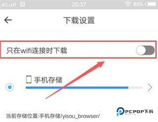 4、在“下载设置”窗口中,找到“只在WIFI连接时下载”栏目下开启即可
