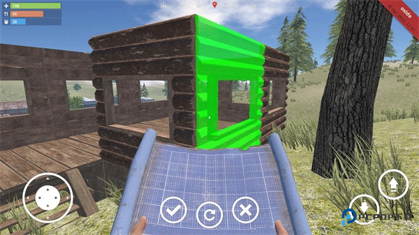 使用木头和石块建造简易房屋,保护资源和角色安全