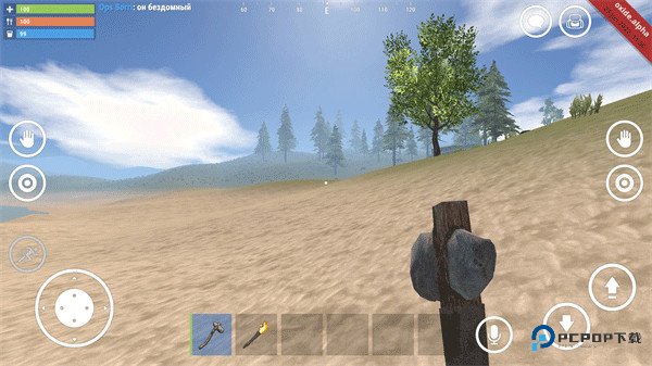 1、进入游戏后,我们是空背包状态,身上只有一个火把和石头,现在我们便开始了生存之旅。